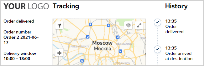 Each order has a unique widget link in the format https://yandex.ru/courier/tracking/<tracking ID>.