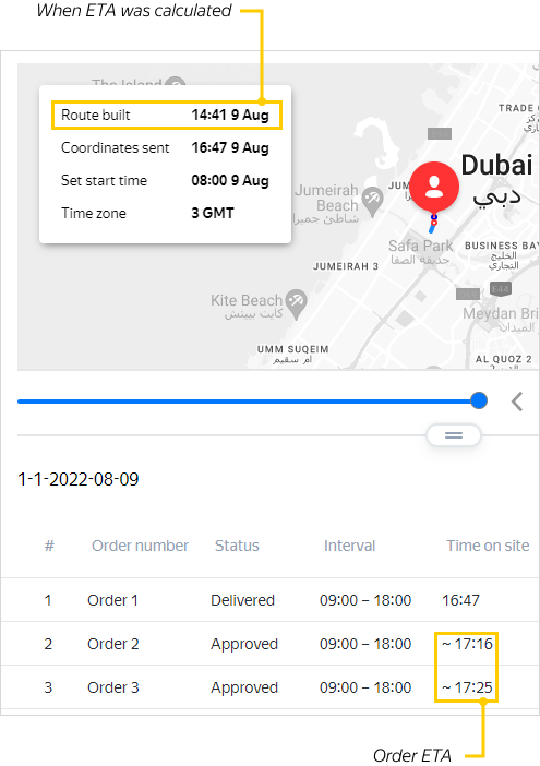 If the courier deviates from the planned sequence of visiting locations, ETAs will no longer be calculated for the entire route.