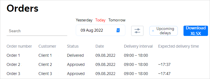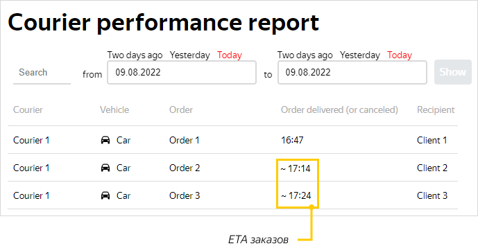 Clients can find the ETA in the widget: there'll be a URL in the following format: https://yandex.ru/courier/tracking/<track ID>. For more information, see Client widget.