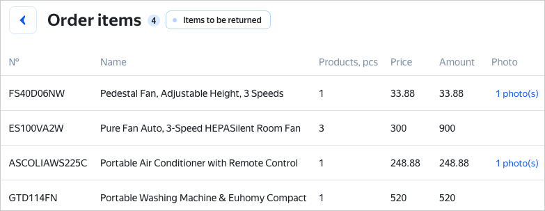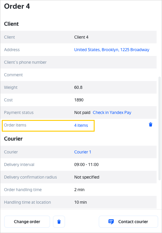 If a client returns some of the orders, the courier marks this with a comment in the Yandex Courier app and can also add photos for each item. For more information, see Partial delivery if order items are specified.