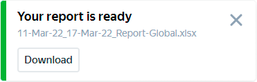 When the report is ready, a notification will pop up with the report's name (the name is generated automatically and contains the start and end dates of the period).