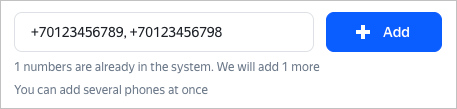 To add phone numbers, enter them separated by commas at the bottom of the page and click Add: