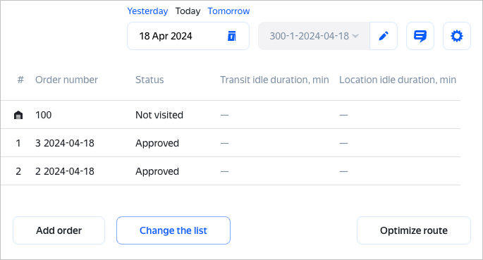 If the order sequence doesn't seem optimal, click Optimize route, and the route will be rebuilt.