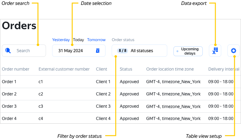 If you want to view only soon-to-be-delivered orders with a delay, click Upcoming delays. Click the button again to reset the filter.