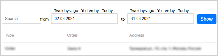 | Latitude, Longitude | Coordinates are only shown for orders with the Delivered or Partially delivered status. The coordinates of the point where the order was marked as completed. |
