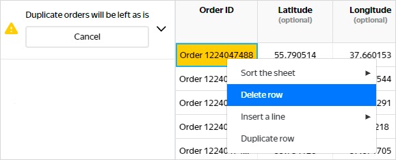 Order number in your system. The value must be unique for the entire sheet and meet the requirements. The maximum length is 80 characters. |