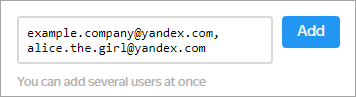 To add multiple users at once, specify their email addresses separated by comma.