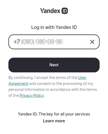 The next step depends on whether you previously logged in to other Yandex apps on this device: