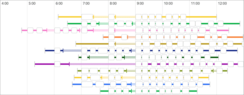 The example below uses the transit travel method for one courier and the driving method for another courier. Orders are distributed among couriers so that the vehicle delivers to points further away from public transit stops or from each other.