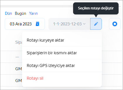 Rotayı bir bütün olarak başka bir kuryeye aktarabilirsiniz. Bunu yapmak için → Rotayı kuryeye aktar. Aradığınız kurye listede yoksa onu listeye ekleyebilirsiniz.