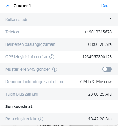 Kullanıcı adı olarak kuryenin cep telefonu numarasını +90xxxxxxxxxxxx formatında girerseniz, kuryenin Yandex Courier uygulamasına girmek için kullanıcı adını girmesi gerekmez.